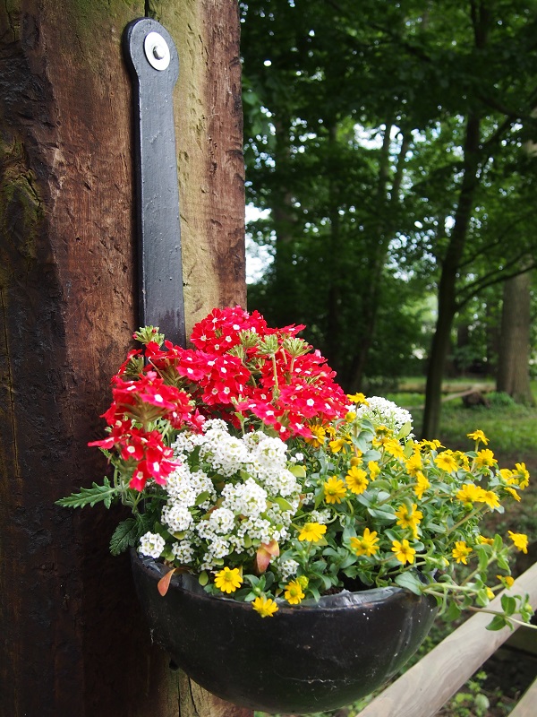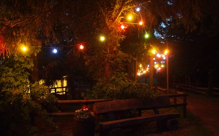 Blumen und Lichterketten schmücken den Platz,