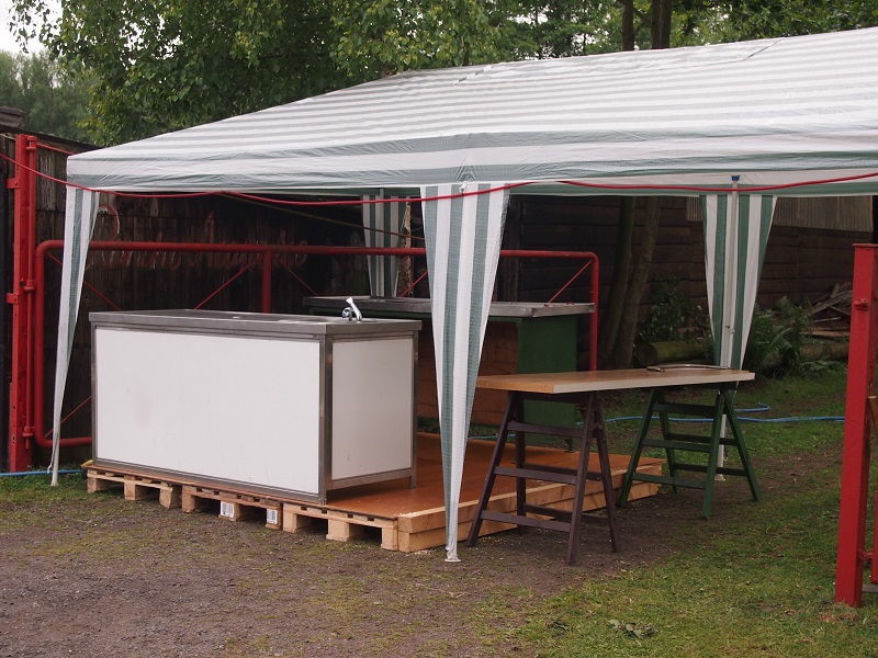 die Spühltheke wurde (auf-)gebaut, der Toilettenwagen richtig gesetzt.
