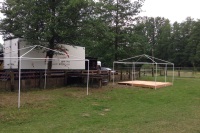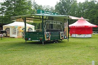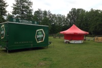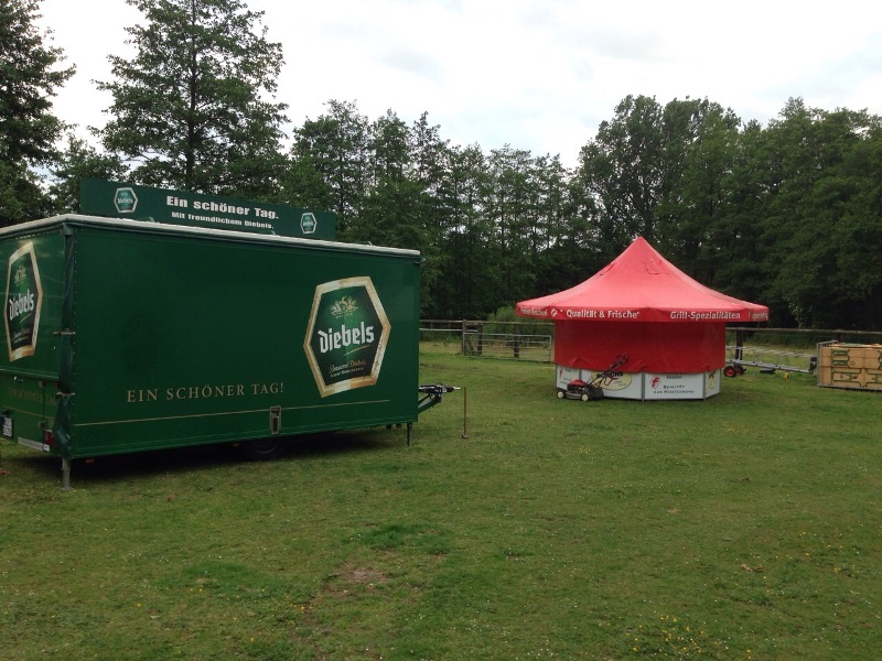 Der große Kühlwagen hat es letzt endlich auch auf den Platz geschafft. Der Bierwagen, die Pommesbude und kleine Zelte stehen bereits!